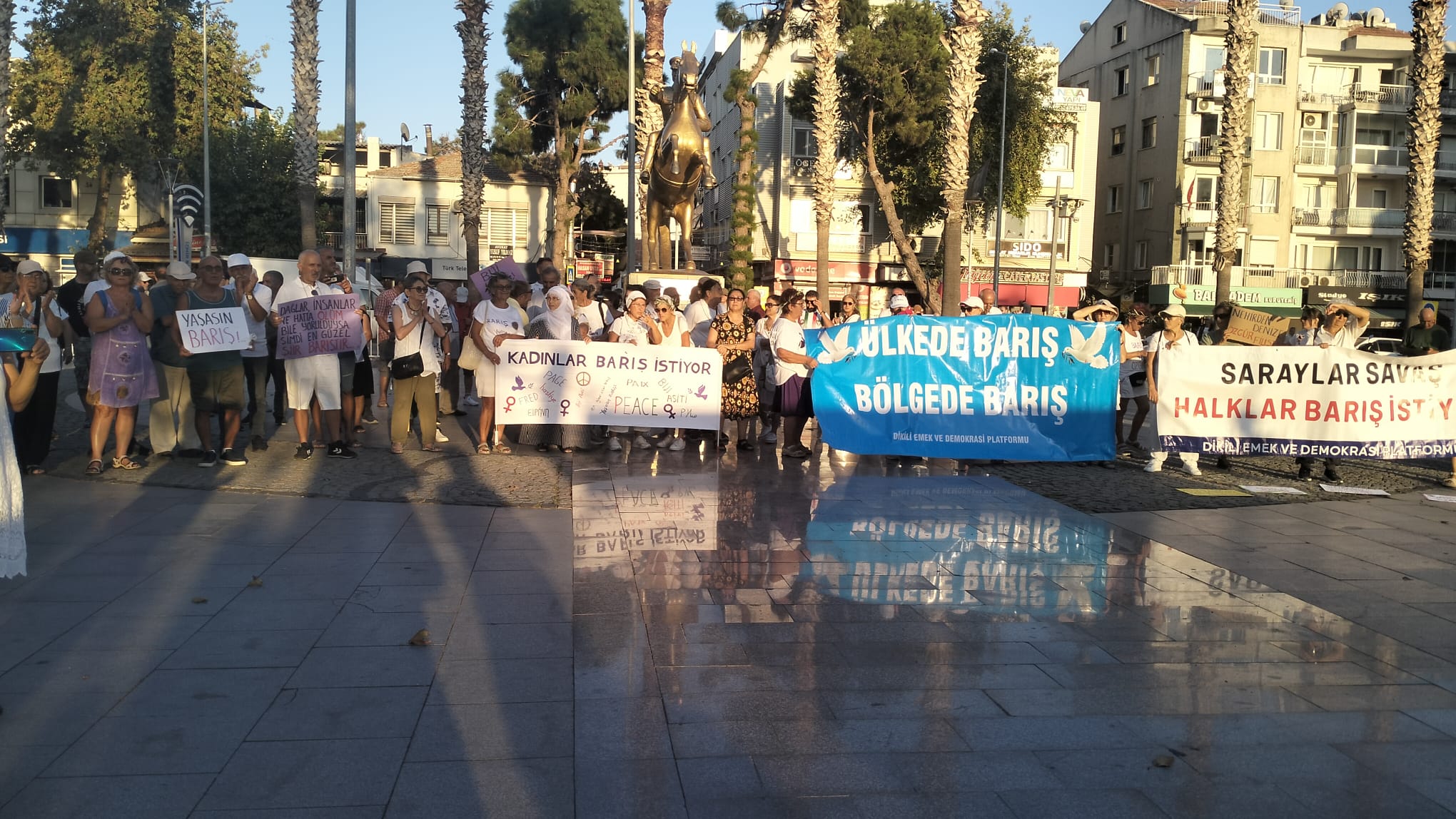 Narlıdere Demokrasi Platformu’nun açıklamasında, “Bugün 1 Eylül Barış Günü’nde bölgede ve ülkede barış mücadelesi, işçi sınıfı ve halklarımızın elinde yükselecektir” denildi.